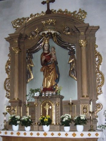 1781: Der Hochaltar wurde aus der großen Pfarrkirche zu Herxheim bei Landau erworben. Da er zu groß war, wurde er um zwei Aufsätze gekürzt.