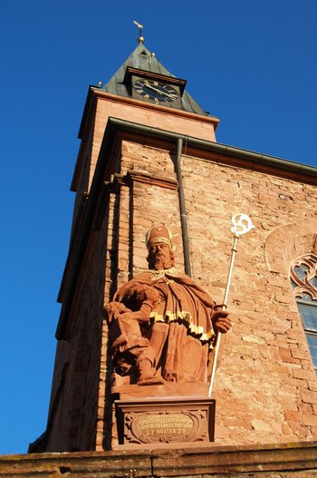 - das Doppelgrabmal der Dalberger, 16. Jhd., mit lebensgroßen steinernen Figuren der Erbauer.